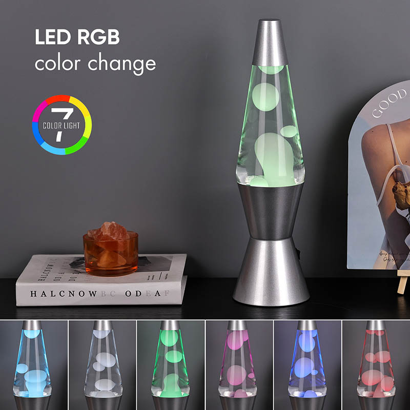 15-дюймовая светодиодная лавовая лампа RGB имеет 7 цветов, меняющихся внизу. цвет белый от лавы.