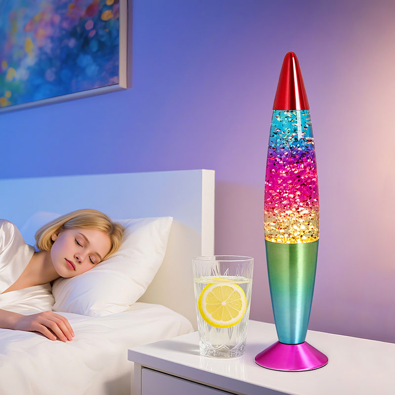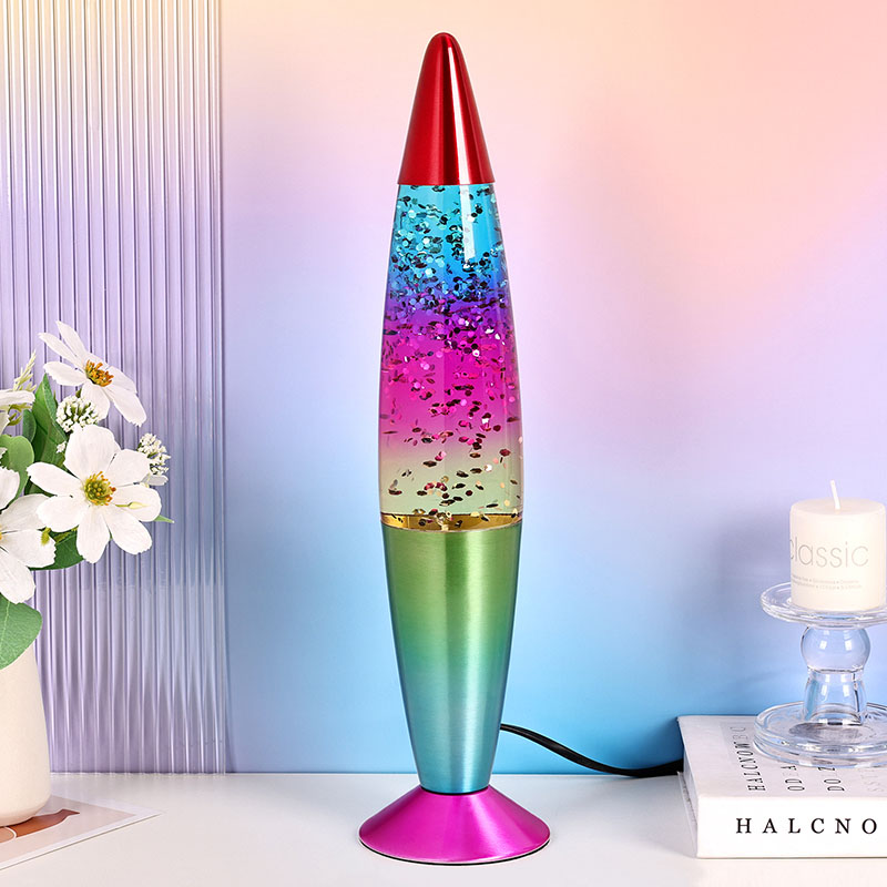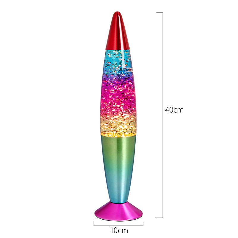 Свет RGB с блестками цвета пули имеет уникальный дизайн в форме пули, с гладкой и динамичной общей формой, как у ракеты мечты, которая вот-вот будет запущена. Металлический корпус был тщательно отполирован и обработан, имеет гладкую и нежную поверхность и удобен на ощупь, демонстрируя благородную и элегантную атмосферу. Лампы могут излучать свет разных цветов, благодаря чему вся жидкость меняет цвет.