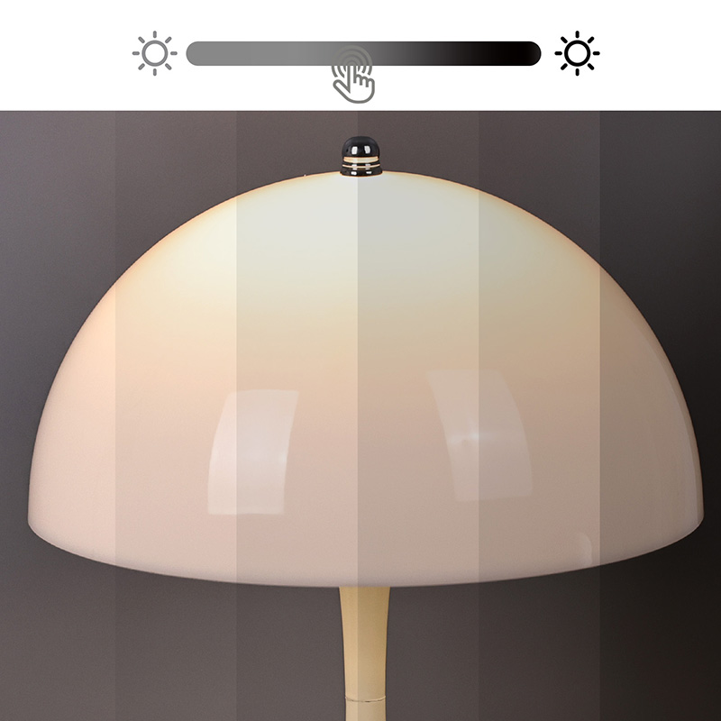 Крышка настольной лампы выполнена в милом бежевом цвете, который также можно превратить в красный, черный, синий и так далее. Если расположить их в ряд, это будет красивый пейзаж.