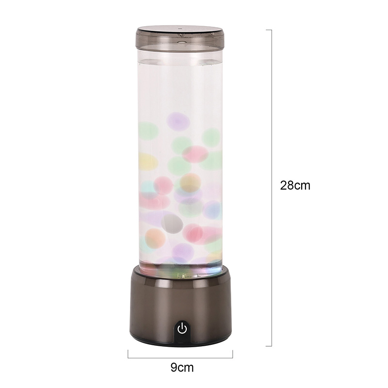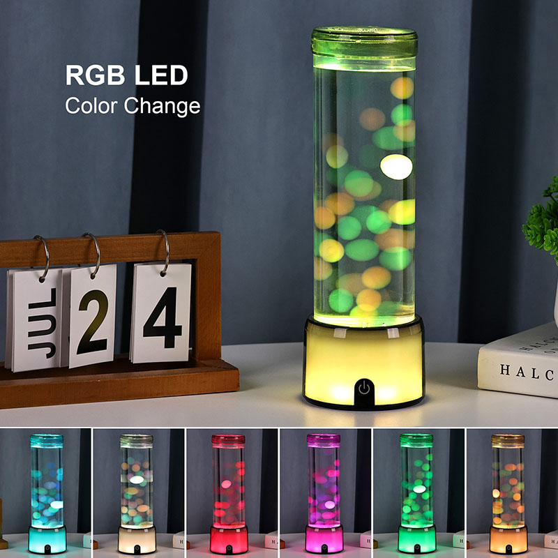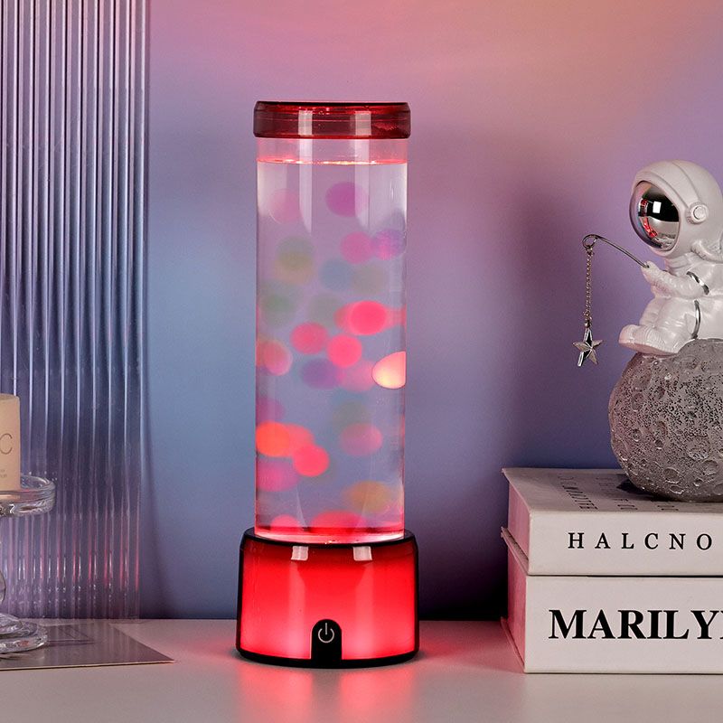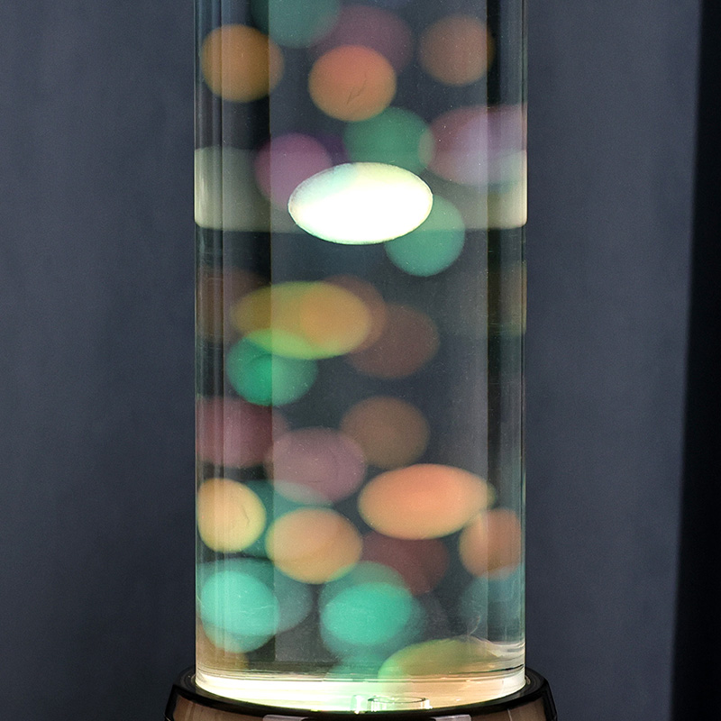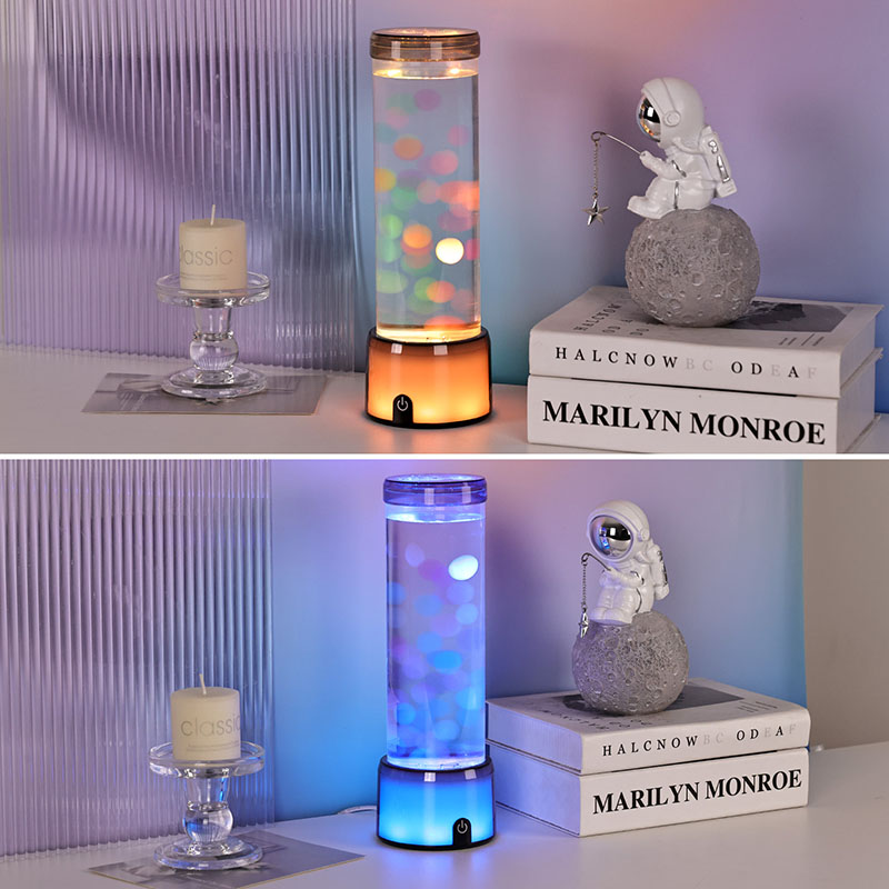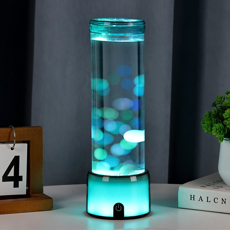 Высокая, элегантная цилиндрическая форма лампы придает ей современный минималистичный вид, который дополняет различные стили интерьера. Его прозрачный корпус обеспечивает полную видимость внутренних элементов, в том числе плавающих медуз и мерцающих отражений света. Жидкость внутри специально разработана для имитации потока воды, повышая реалистичность плавающего движения. Когда светодиоды меняют цвета, медузы кажутся пульсирующими жизнью, добавляя сцене глубину и движение.