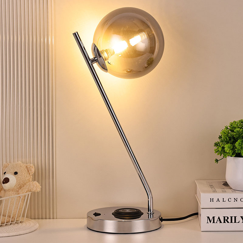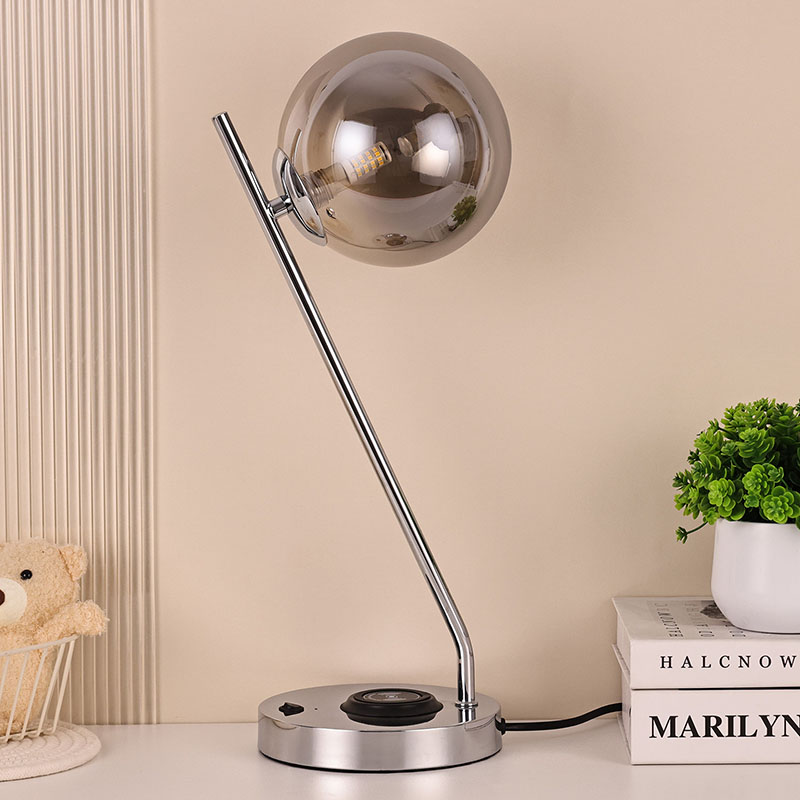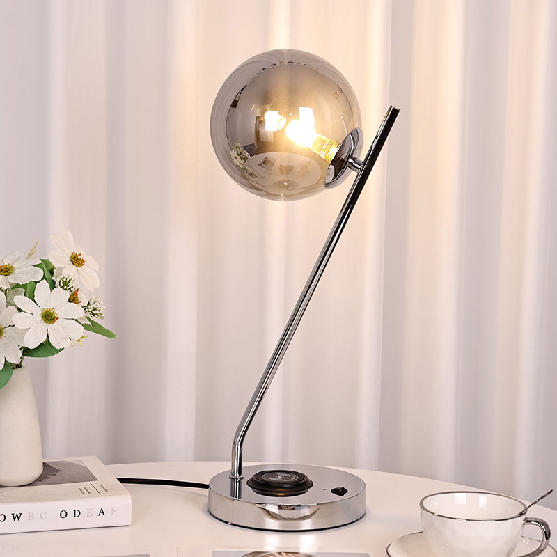 с функцией беспроводной зарядки 10 Вт, переключателем ВКЛ/ВЫКЛ на базеДля этой цели предназначена настольная лампа в форме шарика из темного стекла с беспроводным зарядным устройством, которое включает в себя стеклянную крышку, светодиодное освещение теплых цветов и металлическую подставку для беспроводной зарядки мобильного телефона. Он идеально сочетает в себе современные технологии с теплым дизайном, обеспечивая беспрецедентное удобство и комфорт.