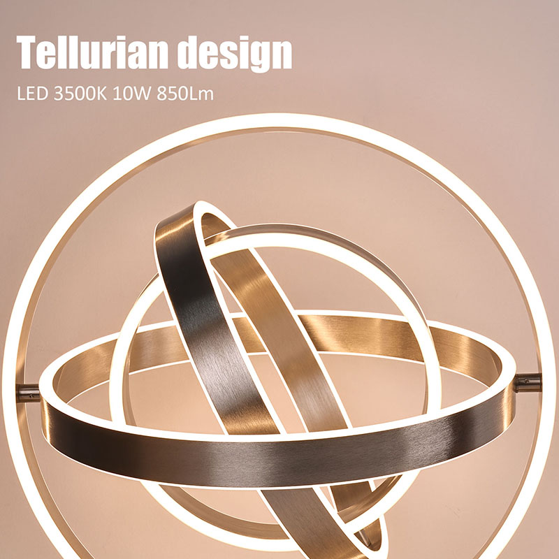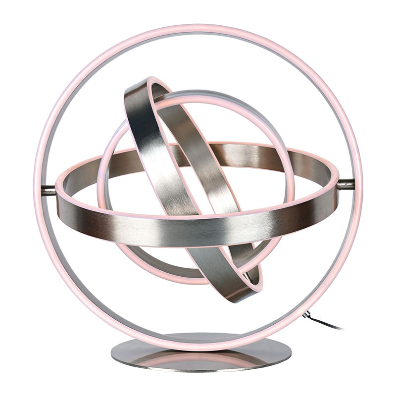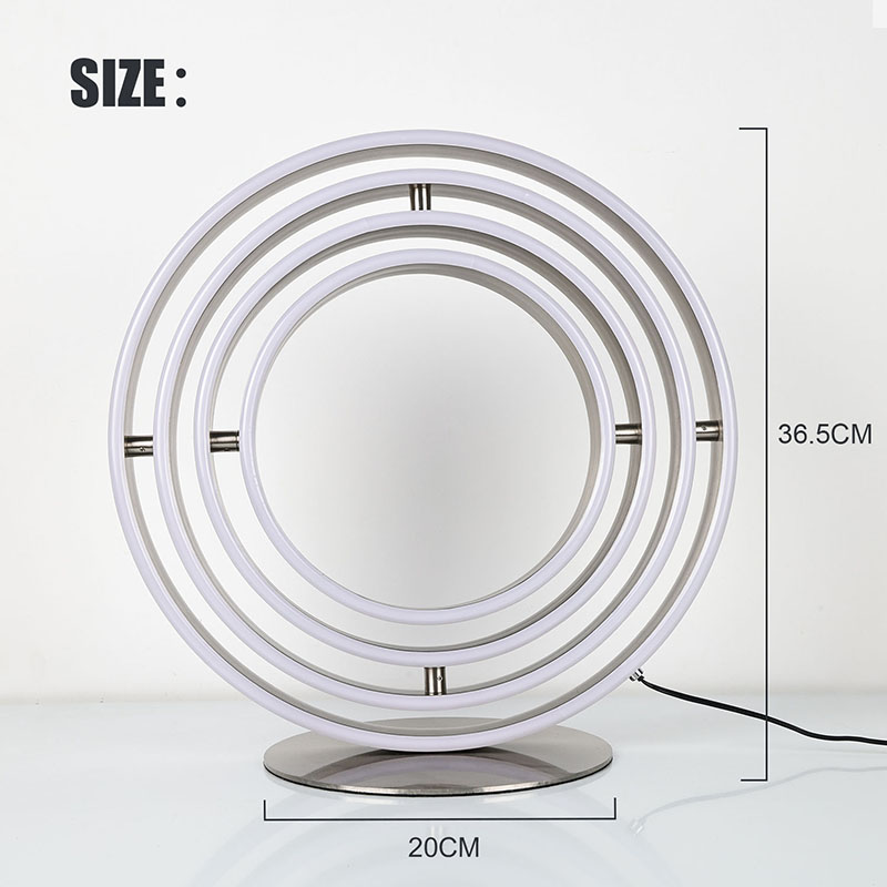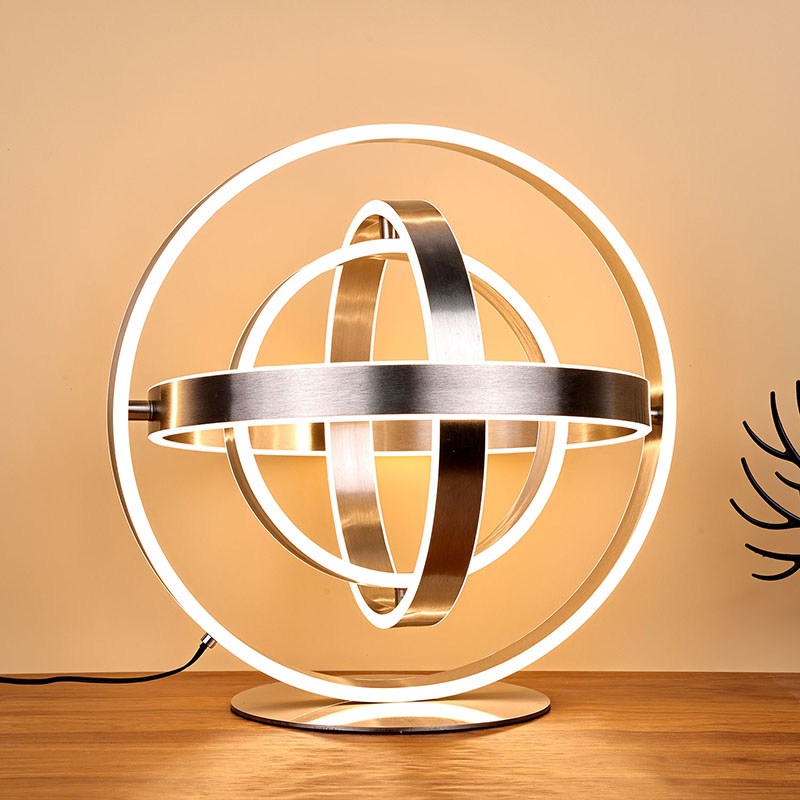 The изысканная светодиодная настольная лампасостоит из нескольких кольцевых светодиодных ламп со светодиодными лампами, врезанными в каждую кольцевую периферию. Кольцевая конструкция может вращаться, принимая сферическую форму.
