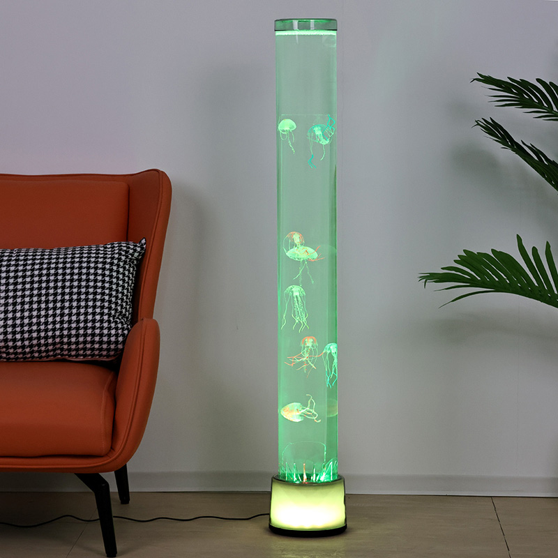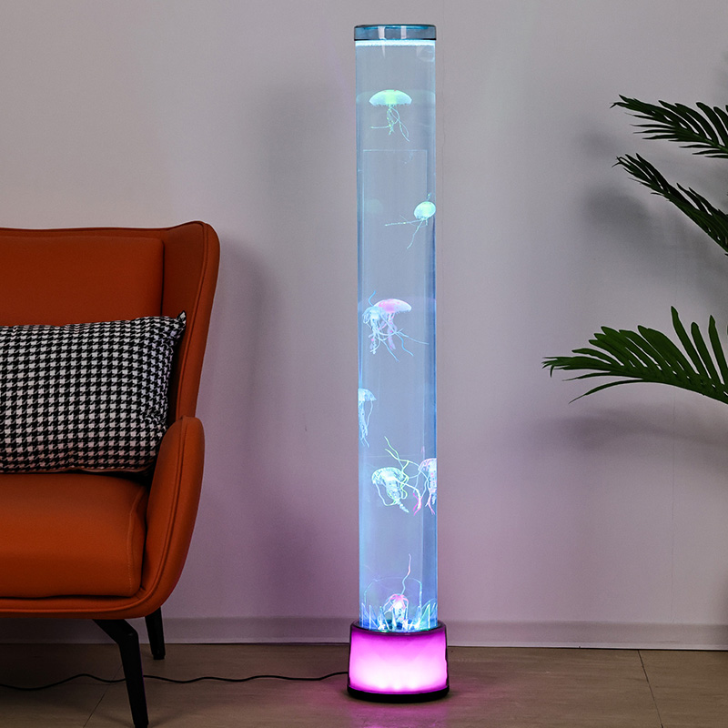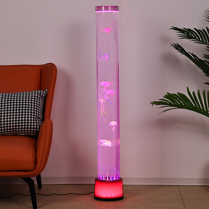 Внутри корпуса лампы тщательно расположены несколько бионических моделей медуз. Под нежным светом светодиодов они медленно плывут и изящно танцуют, дополненные интеллектуальной системой изменения цвета, создавая завораживающую атмосферу.