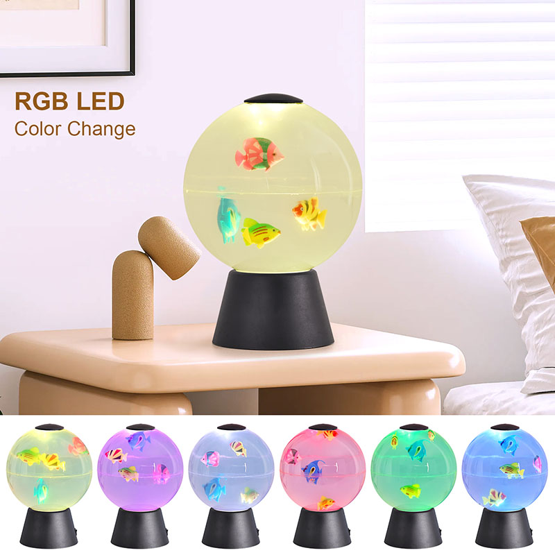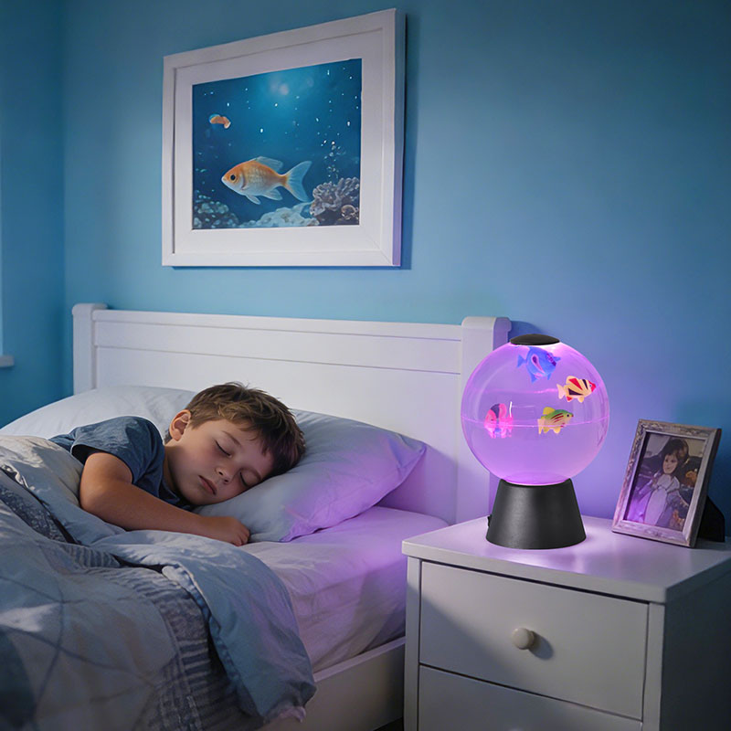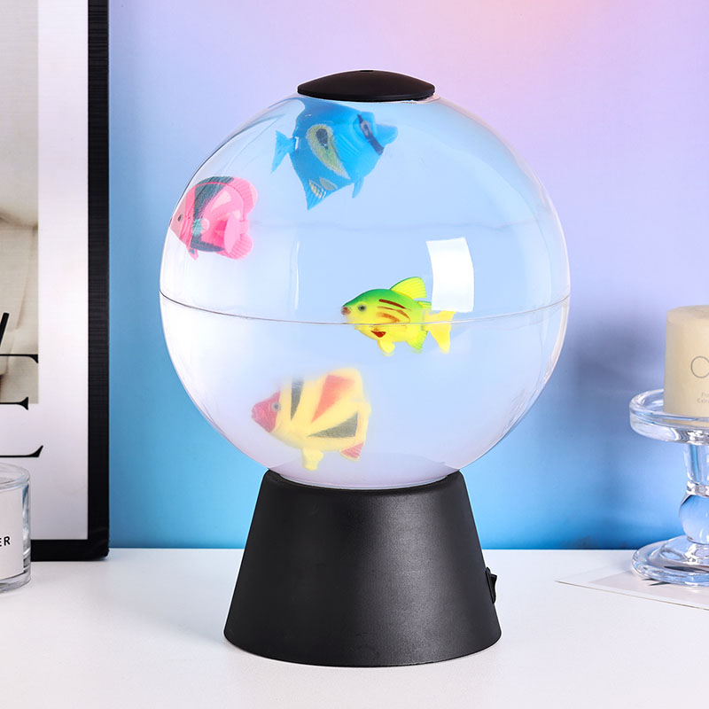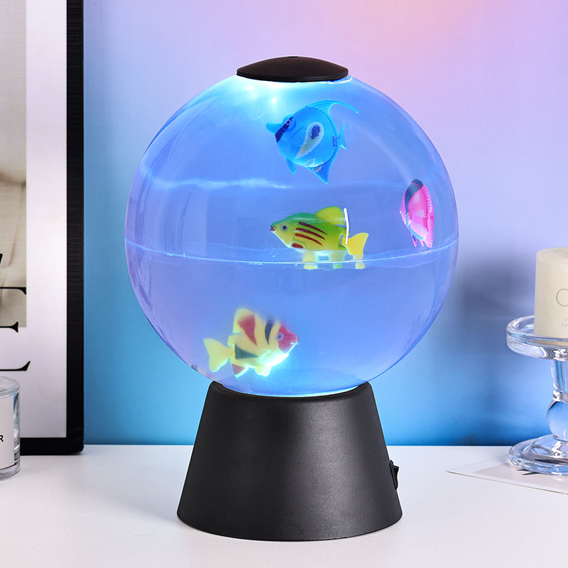Лампа — потрясающий декоративный светильник, имитирующий безмятежное движение рыб, плавающих в мини-корпусе.