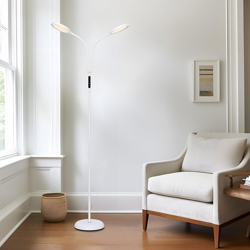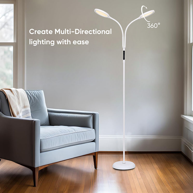 Представьте себе напольный торм, который не просто стоят там; Это адаптируется к каждому вашему движению, каждому вашему настроению. Благодаря уникальному 2-х головому дизайну светодиодного торника с двойным слышимым предлагает непревзойденную гибкость. Каждая голова может повернуть полные 360 градусов, гарантируя, что вы сможете направлять свет именно там, где он вам нужен. Независимо от того, работаете ли вы над проектом, который требует сфокусированного освещения, читая книгу в уютном углу или просто наслаждаясь ночью в кино с семьей, эта лампа вас покрыла.
