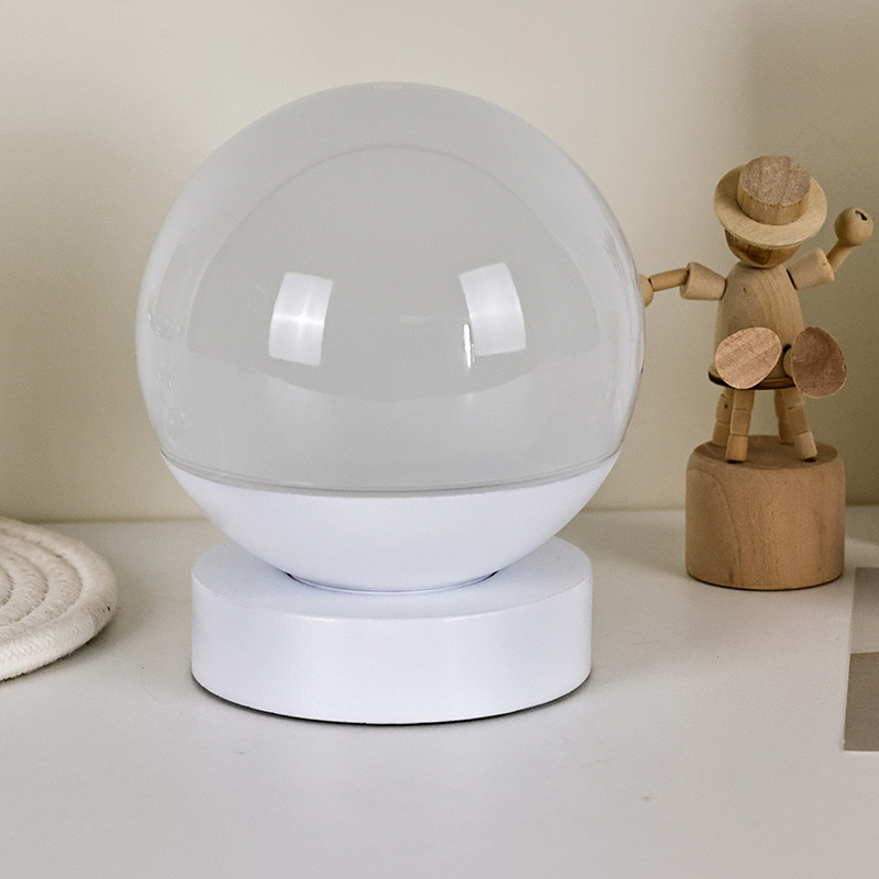 Общий дизайн представляет собой округлую сферу, верхняя половина которой выполнена из полупрозрачного матового материала, излучающего мягкий, нежный свет. Нижняя половина состоит из белой основы для стабильной поддержки и имеет чистые и плавные линии. Его компактный размер