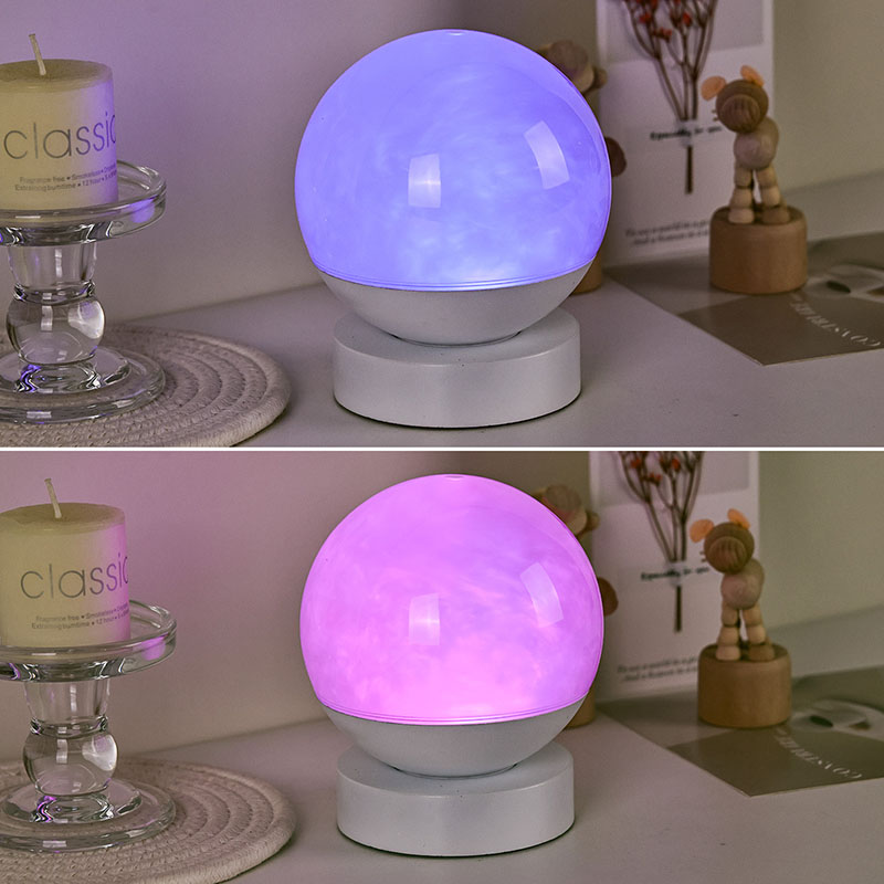 Используя передовую технологию светодиодной светоотдачи в сочетании со специальной внутренней оптической конструкцией, освещение внутри сферы создает динамический эффект, напоминающий медленно текущие облака и туман. Цвета плавно меняются