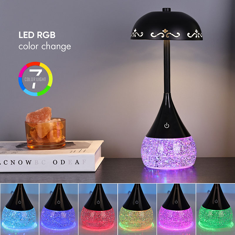 Внутри основания прозрачная бутылка содержит жидкость, которая нерегулярно перемещается, создавая увлекательный визуальный эффект. Жидкая базовая светодиодная настольная лампа с цветочной формой не является обычной жидкостью; Он был специально сформулирован для создания завораживающего танца Shimmer and Vlirl. Когда жидкость движется, она отражает свет в постоянно меняющемся рисунке, создавая постоянно развивающий визуальный опыт.