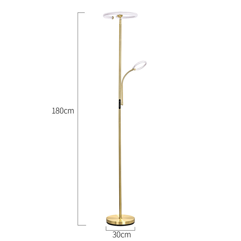 Роскошный золотой светодиодный торшер для гостиной изготовлен из высококачественного золотистого металлического материала и имеет простой, но роскошный общий дизайн. Металлический материал был тщательно отполирован и обработан, имеет гладкую и нежную поверхность и мягкий блеск, демонстрируя благородную и элегантную атмосферу. Независимо от того, размещены ли они в гостиной, спальне или