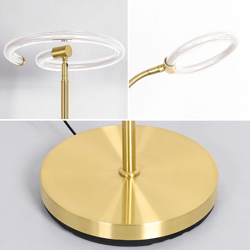 Латунь, Сатинированный никельРоскошный золотой светодиодный торшер для гостиной, выполненный из золотистого металлического материала и силиконовой трубки для освещения на 360 градусов, стал идеальным выбором для современных домов благодаря своему уникальному шарму и превосходной функциональности.