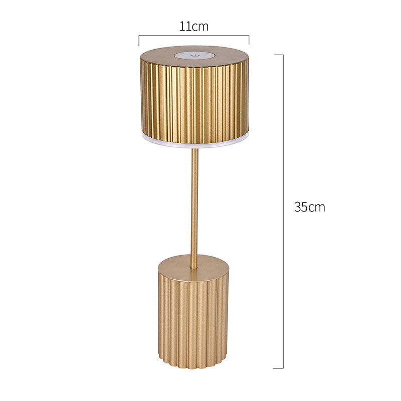Небольшая настольная лампа с металлическим абажуром и батареей изготовлена из высококачественного металлического материала, поверхность которого была тщательно отполирована и обработана, что придает ей гладкую и нежную текстуру и элегантный блеск. Будь то золото, серебро или другие классические цвета, они прекрасно сочетаются с различными стилями оформления интерьера, создавая современную и роскошную атмосферу.