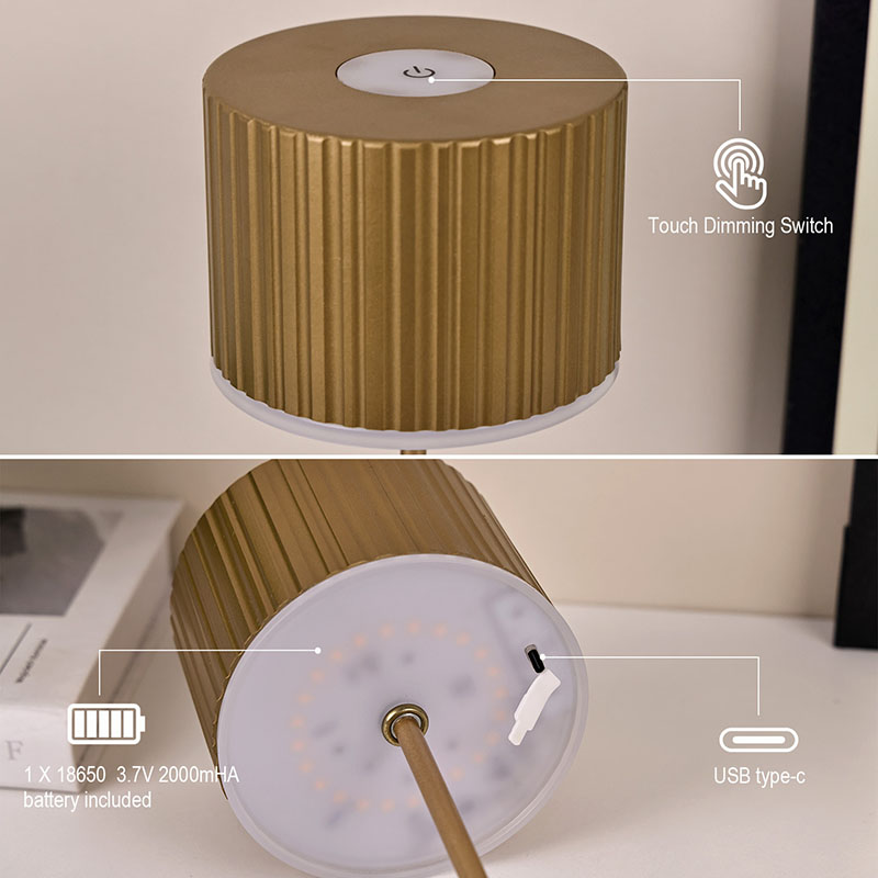 Сенсорный переключатель (зарядка Type-c)Чтобы удовлетворить потребности в освещении различных сценариев, небольшая настольная лампа с металлическим абажуром и батареей оснащена усовершенствованной 3-скоростной функцией затемнения. С помощью простых операций вы можете свободно регулировать интенсивность освещения.