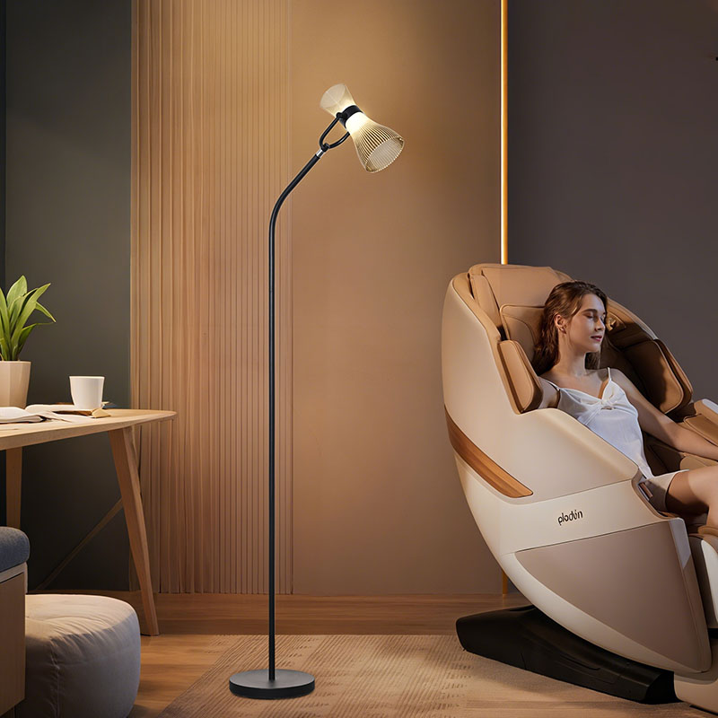 плавные и естественные линии, демонстрирующие благородную и элегантную атмосферу. Стеклянный абажур не только придает лампе прозрачную и чистую текстуру, но и эффективно рассеивает свет, делая свет более мягким и равномерным. Независимо от того, размещен ли он в гостиной, спальне или кабинете, современный светодиодный торшер со стеклянным абажуром идеально подойдет