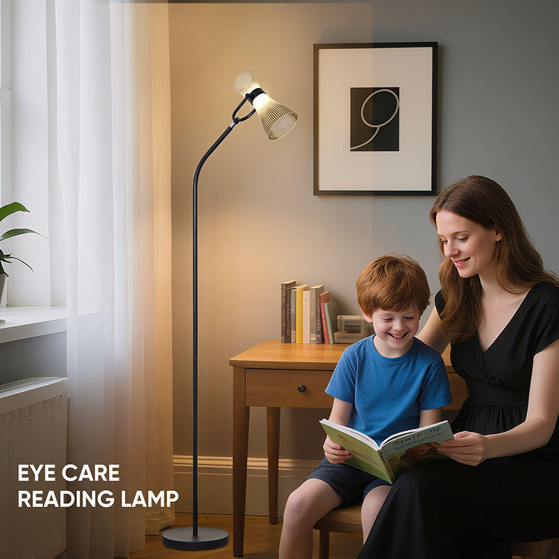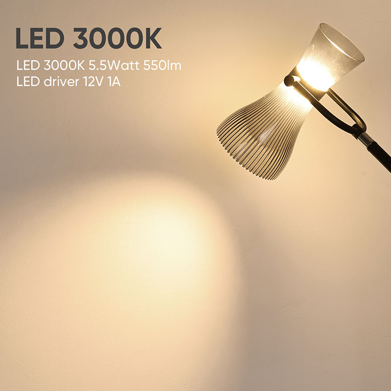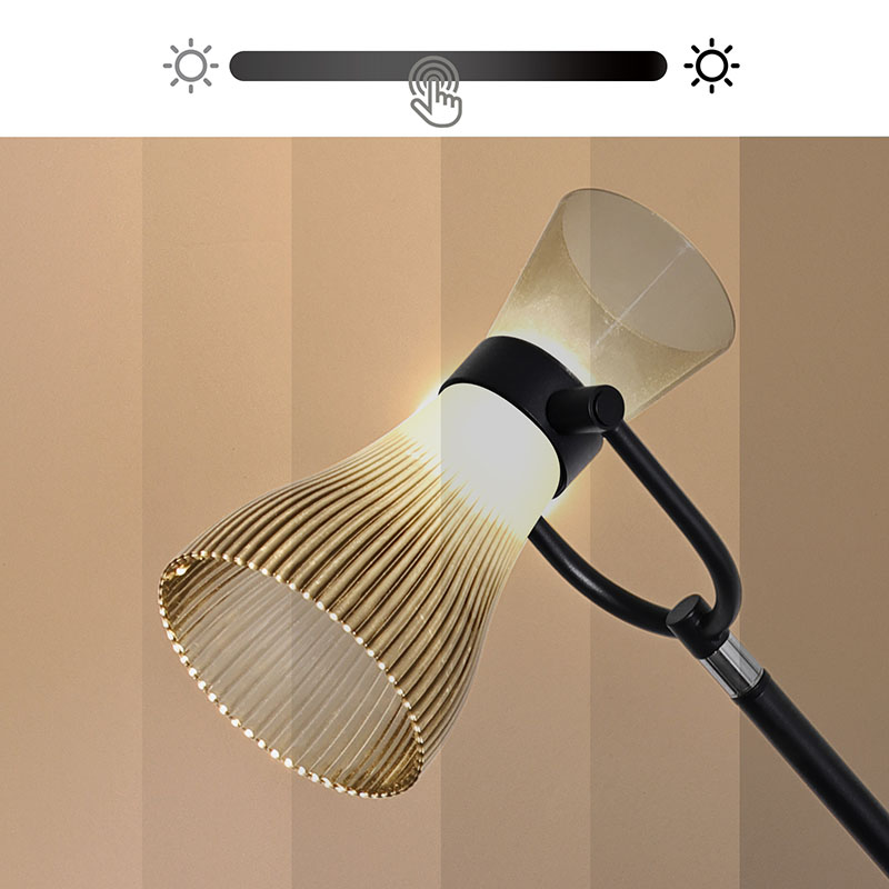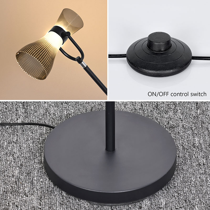 Современный светодиодный торшер со стеклянным абажуром оснащен современными светодиодными источниками света, которые излучают мягкий и яркий свет, эффективно защищая глаза и снижая усталость и дискомфорт, вызванные длительным использованием глаз.