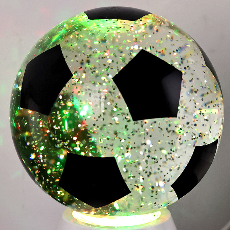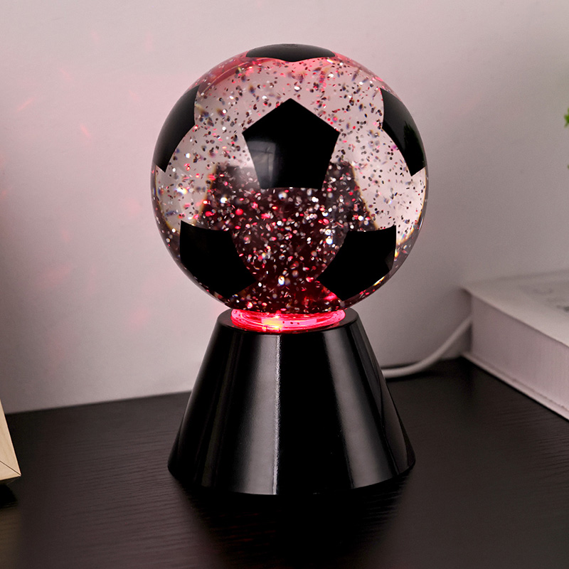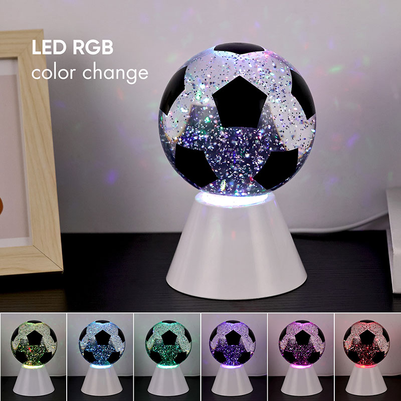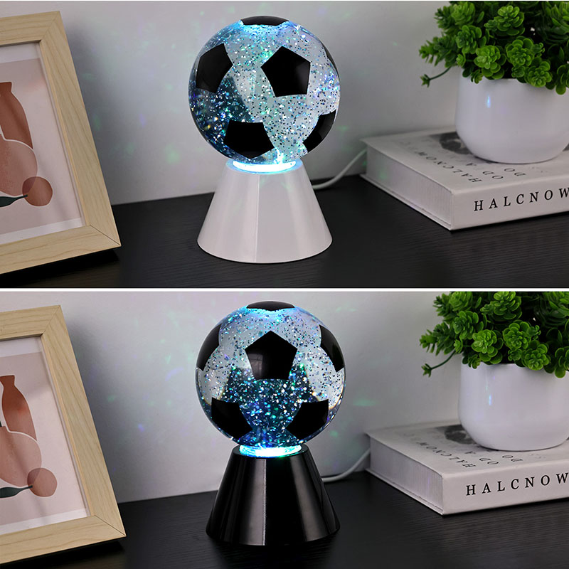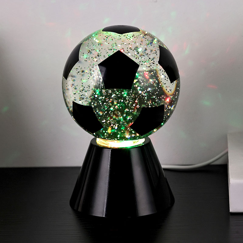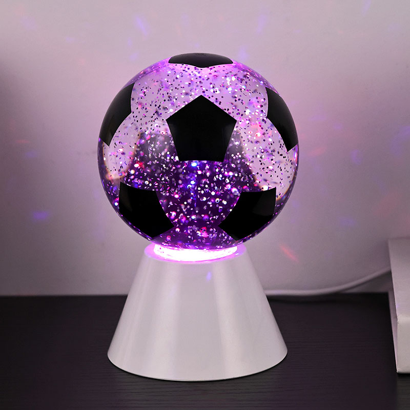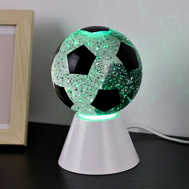 Белый + изменение цвета светодиодаСферический подарочный светильник состоит из верхнего стекла и пластикового основания. На стеклянную поверхность напечатаны футбольные узоры, которые можно напечатать в различных цветах. Главная особенность Night Light with Football Shade в том, что внутри сферы находится жидкость, содержащая блестки. После включения выключателя начинает работать встроенный небольшой мотор, и жидкость внутри стакана будет двигаться неравномерно. В то же время нижний свет Night Light с Football Shade начинает меняться, что очень красиво. Ночник с футбольным абажуром в основном используется для внутренней отделки комнат, гостиных, гостиничных номеров и других мест. Изделие также оснащено USB-зарядкой и может использовать 3 батарейки типа ААА.