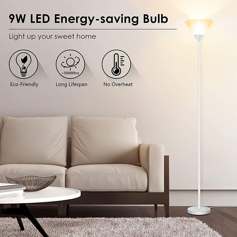 напольное покрытие светильника со светодиодной энергосберегающей лампой мощностью 9 Вт. Лампочка продукта светится вверх, чтобы избежать ослепления и защитить ваши глаза.