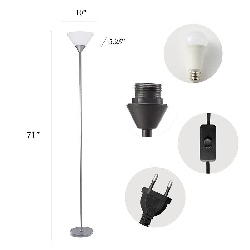 Универсальный светодиодный торшер, изготовленный из высококачественных материалов, имеет прочный металлический каркас и прочный пластиковый абажур. Его минималистский дизайн гарантирует, что он органично впишется в любой интерьер, будь то современный, традиционный или эклектичный. Конструкция с одним стержнем лампы обеспечивает стабильность и чистый эстетический вид, а конический абажур направляет свет вверх, создавая уютную атмосферу.
