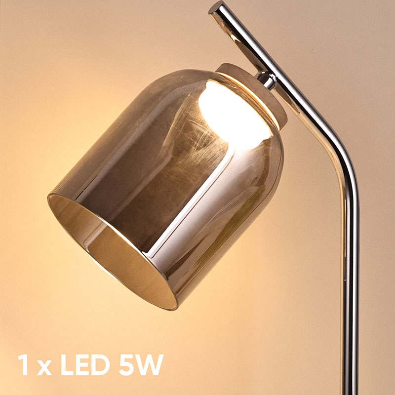 Хромированная основа, дымчатый (янтарный) стеклянный оттенокИнновационный дизайн, стеклянный материал, высококачественный и элегантный внешний вид, очень декоративный стиль дизайна настольной лампы.
