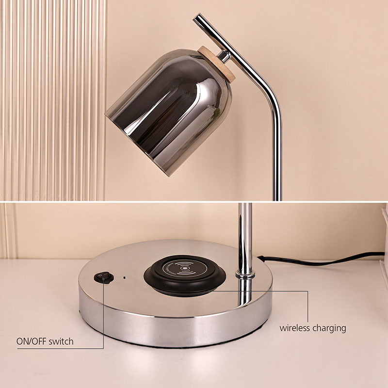 Светодиодная настольная лампа QI со стеклянным абажуром имеет сертификат беспроводной связи QI. Зарядное устройство для беспроводного телефона 5V1A на базе