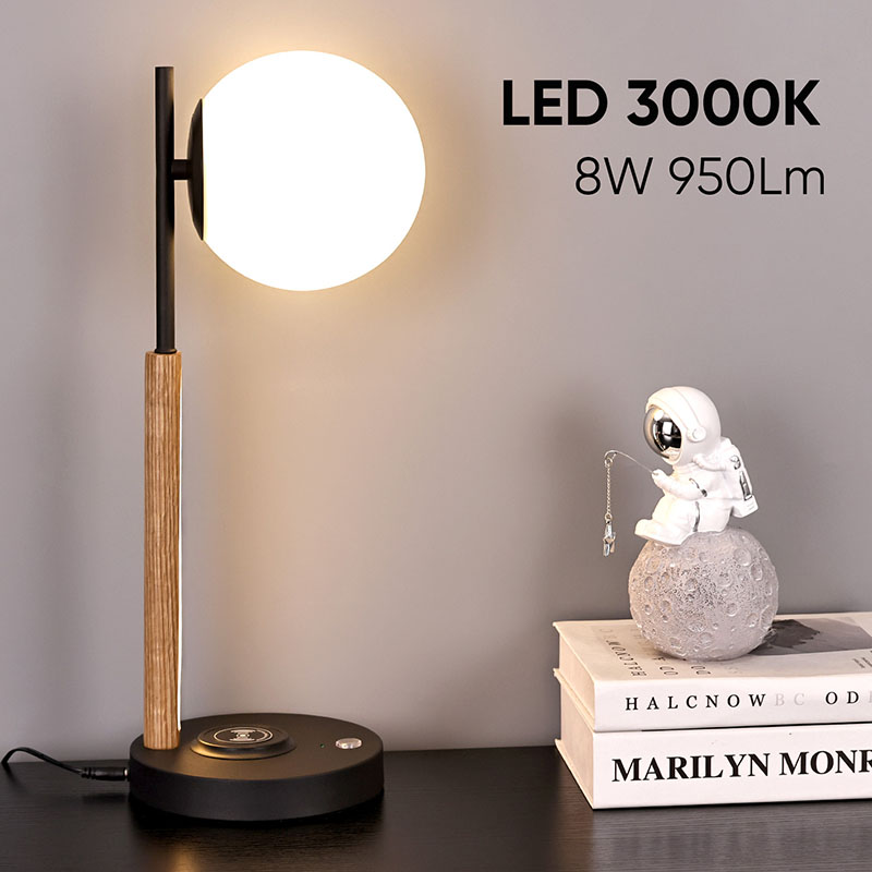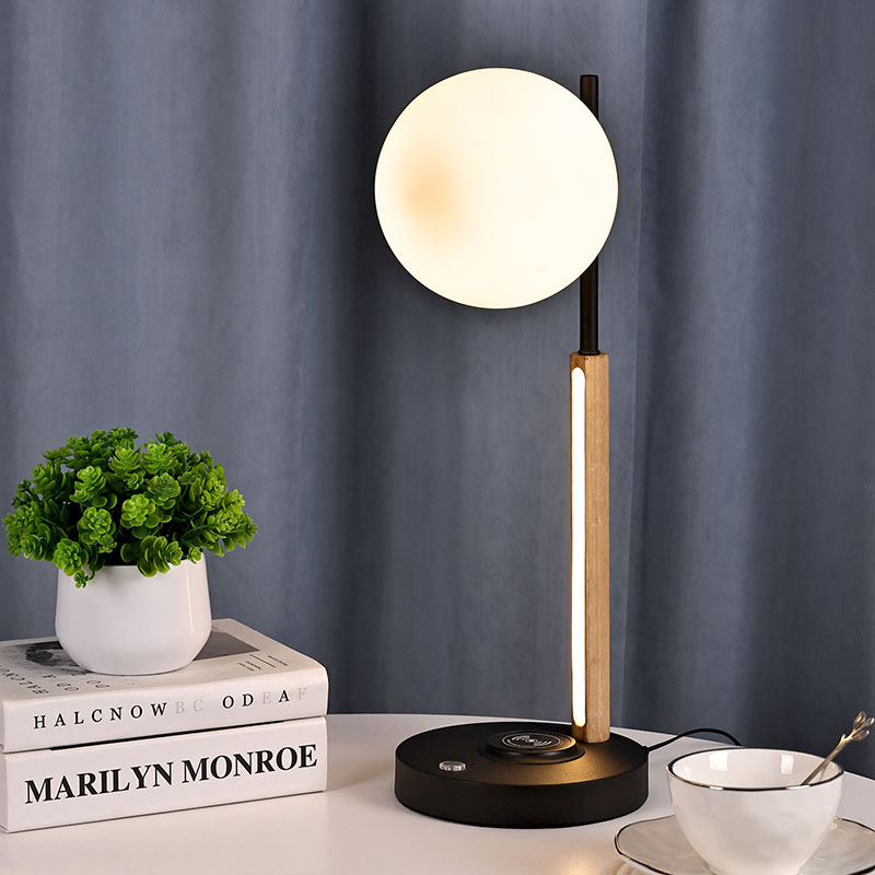 Беспроводная светодиодная настольная лампа QI с деревянным корпусом изготовлена из высококачественного стекла и дерева, отличается хорошей стабильностью и долговечностью. Стеклянный абажур тщательно отполирован и обработан, имеет гладкую и нежную поверхность и мягкий блеск. Деревянный корпус лампы придает лампе устойчивую и благородную текстуру, делая ее более устойчивой и надежной во время использования.