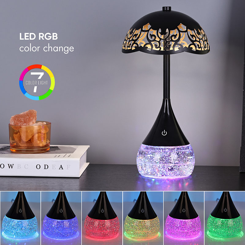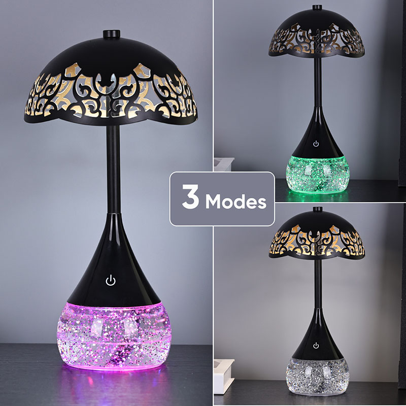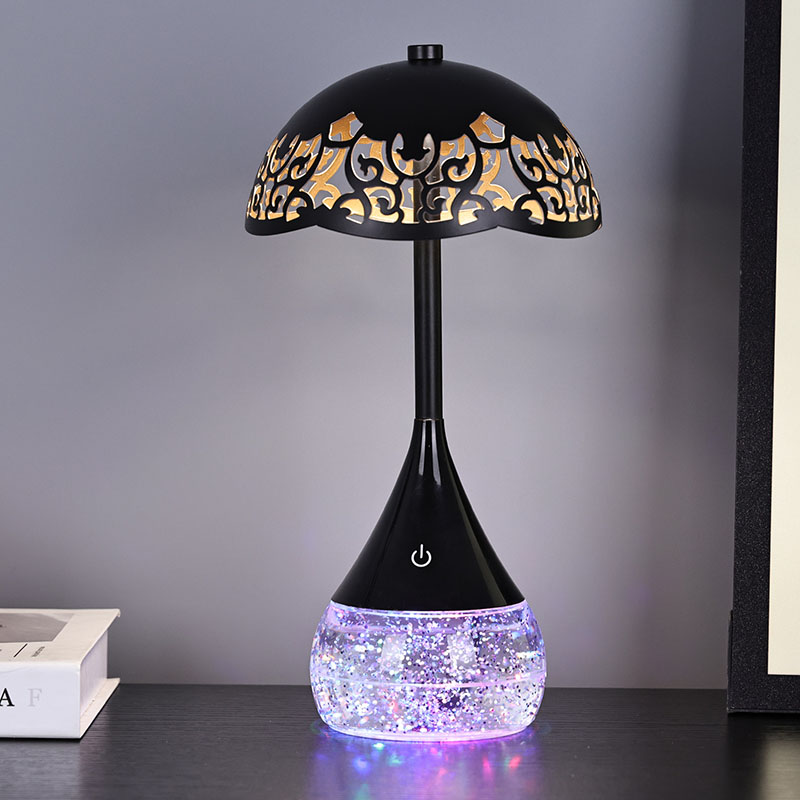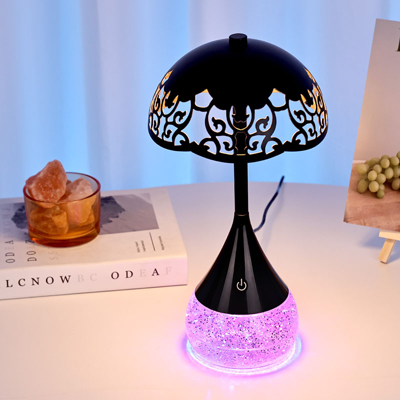 Цветная светодиодная лампа RGB с истинным блеском зонтичной формы лежит не только в ее основе, но и в его инновационном оттенке. Изготовленный из высококачественного металла, оттенок имеет сложные узоры, которые можно отрегулировать в соответствии с вашими предпочтениями. Независимо от того, хотите ли вы широкий открытый рисунок для мягкого, окружающего сияния или узкого, сфокусированного рисунка для целевого освещения, оттенок адаптируется к вашим потребностям.