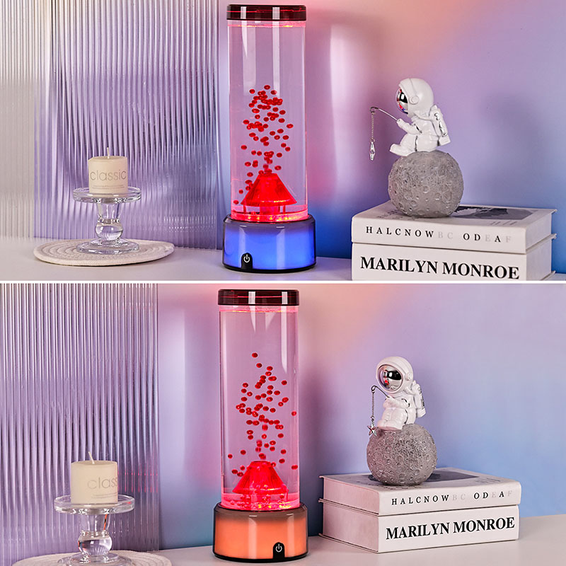 Кроме того, лампа поощряет любопытство и воображение. Дети могут придумывать истории о подводных мирах, где вулканы встречаются с медузами, что способствует творческому и когнитивному развитию. Взрослые могут погрузиться в моменты тихого размышления, оценивая гармонию между противоположными силами.