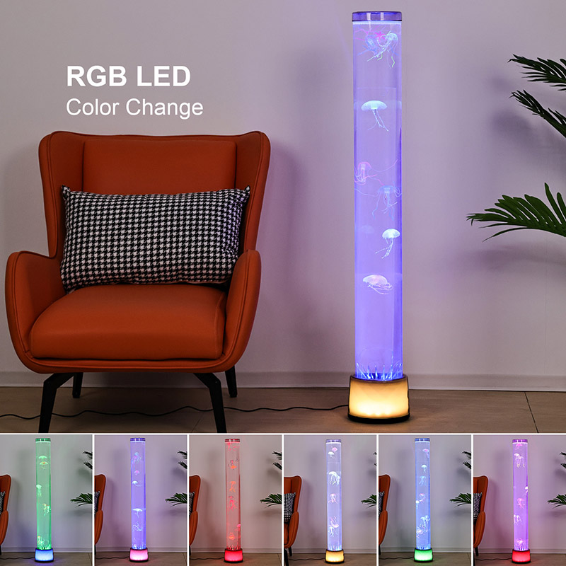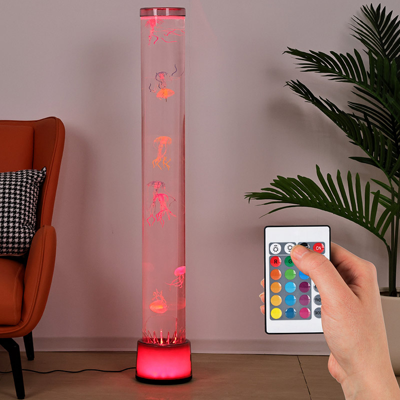 39,5*39,5*113 СМНапольная лампа-медуза RGB — это креативный предмет домашнего декора, сочетающий в себе современные технологии и естественную эстетику. Благодаря мечтательным эффектам света и тени и реалистичному дизайну в виде медуз он придает интерьеру таинственную и спокойную атмосферу океана. Весь дизайн выполнен из высокопрозрачного акрила, имеет тонкую и элегантную форму, напоминающую миниатюрный подводный мир, погружая вас так, как будто вы находитесь глубоко под водой.