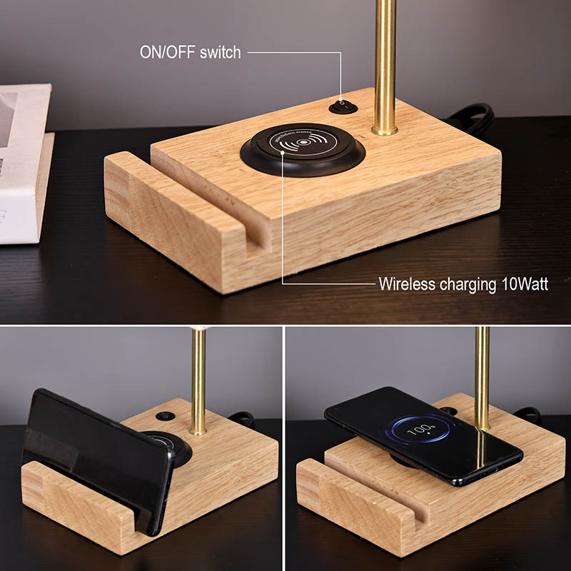 Беспроводная зарядка 10 Вт.Увеличьте свое пространство с помощью максимального стиля и функциональности: светодиодная настольная лампа в традиционном естественном стиле