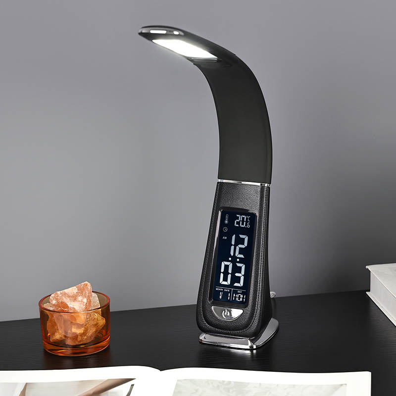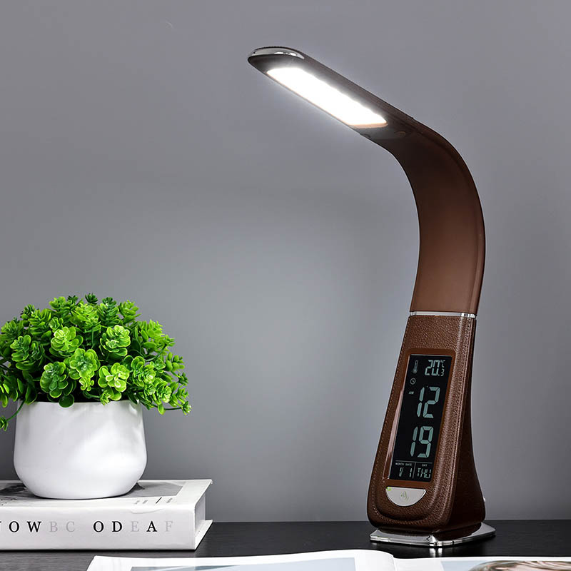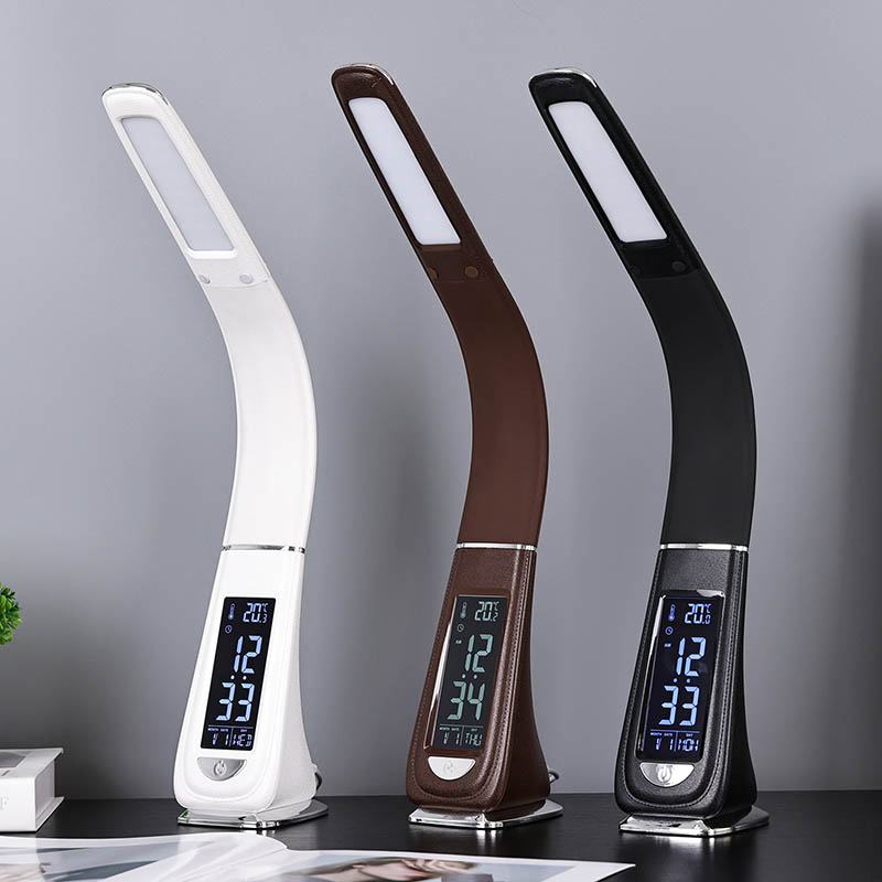 Инновационная кожаная лампа: элегантность соответствует функциональности с регулируемым 3-уровневым освещением, дисплеем с сигналом будильника и портом USB